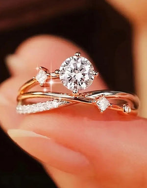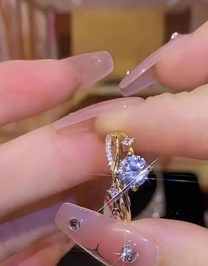 Adjustable Synthetic Cubic Zirconia Golden Starry Sky Ring for Women