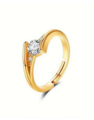 Adjustable Sparkling Cubic Zirconia Golden Finger Ring for Women