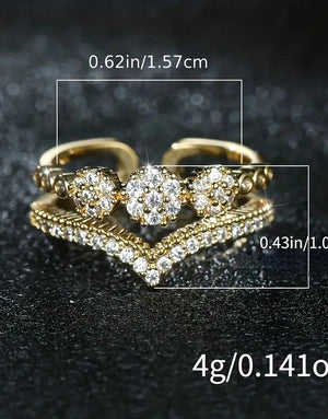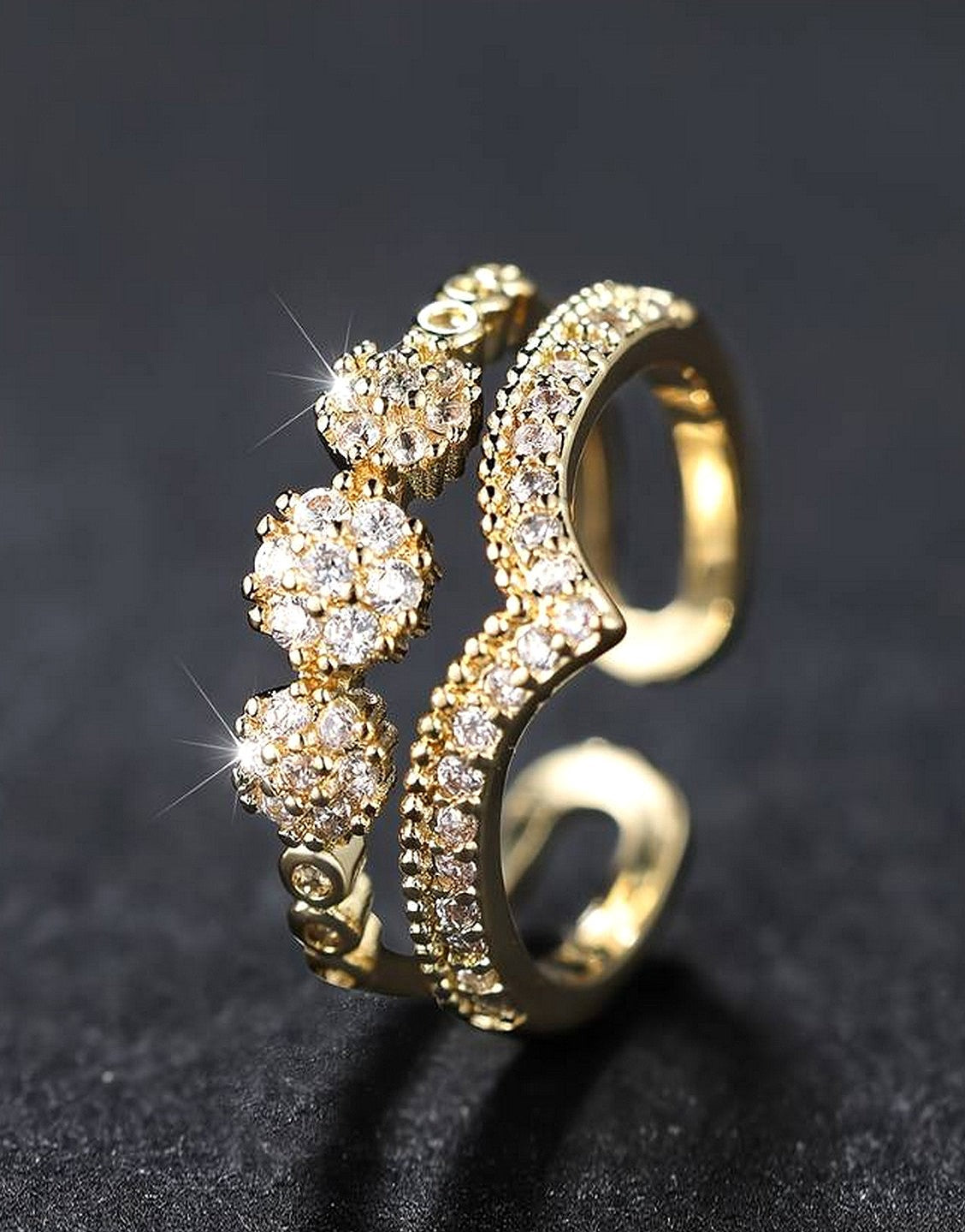 Adjustable Double Layer Royal Crown Shape Cuff Ring