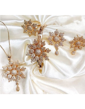 Elegant Floral Design Locket Set with Kara Bracelet & Earrings