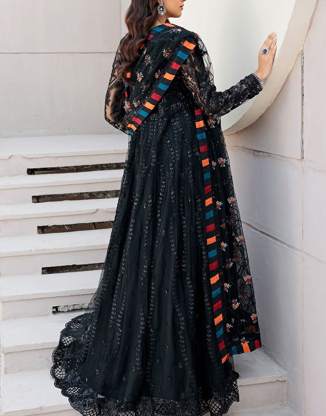Emaan Adeel Fancy Net Black Party Wear Maxi Dress | BL-502 - Out of Stock
