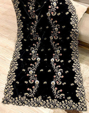 Premium Quality Heavy Embroidered Bridal Velvet Shawl - Black