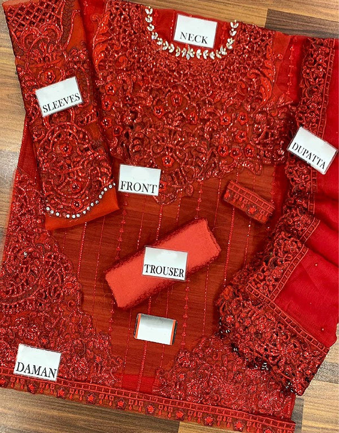 Looking to buy Heavy Embroidered with Cutwork Red Chiffon Wedding Dress - Out of Stock online in Pakistan? Discover modern designs, reliable quality, and the best price available. Shop now and enjoy fast delivery and secure checkout.