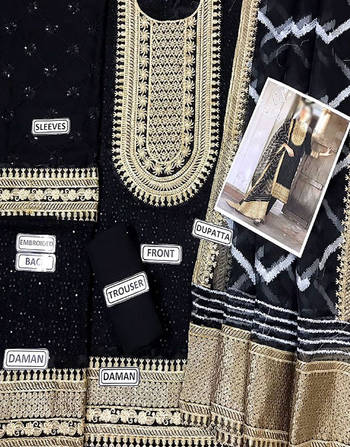 - Heavy Embroidered Front Daman