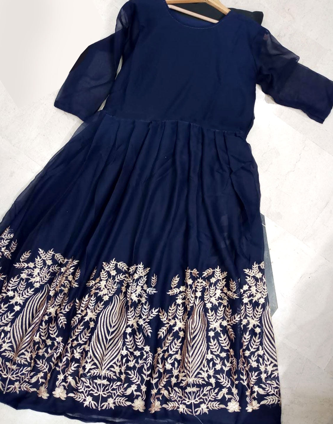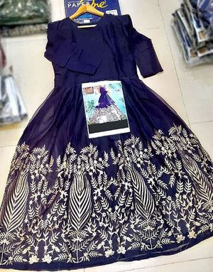 Readymade Embroidered Navy Blue Chiffon Maxi with Inner - Out of Stock