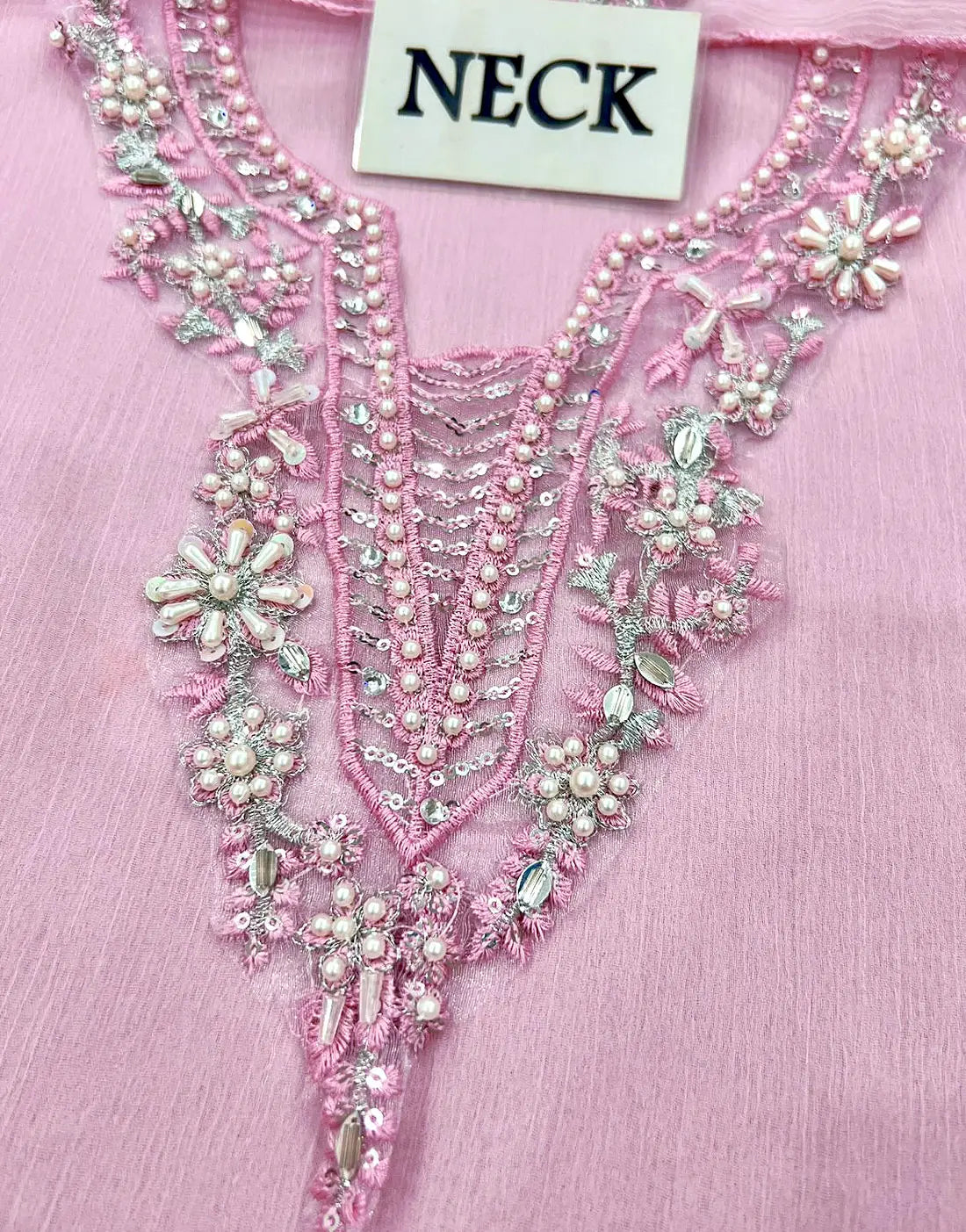 Every woman deserves a dress that makes her feel effortlessly elegant, and this Sophisticated Tea Pink Chiffon Formal Party Dress with Rich Hand‑Embellished Neckline & Sleeves is designed to do just that. Imagine stepping into a wedding dinner or festive gathering, the soft tea pink chiffon flowing gracefully with every move, while the hand‑embellished neckline and sleeves shimmer under the lights. For Pakistani women searching for attire that blends tradition with modern sophistication, this tea pink dress solves the challenge of finding something stylish yet comfortable. The lightweight chiffon ensures ease during long celebrations, while the intricate embellishments add timeless charm.