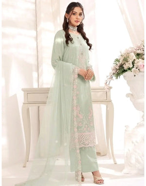 Batul Semi-Stitched Embroidered Soft Green Chiffon Dress for Festive & Party Wear