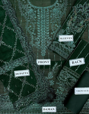 Formal Heavy Embroidered Chiffon Party Wear Suit with Silk Trouser - Out of Stock