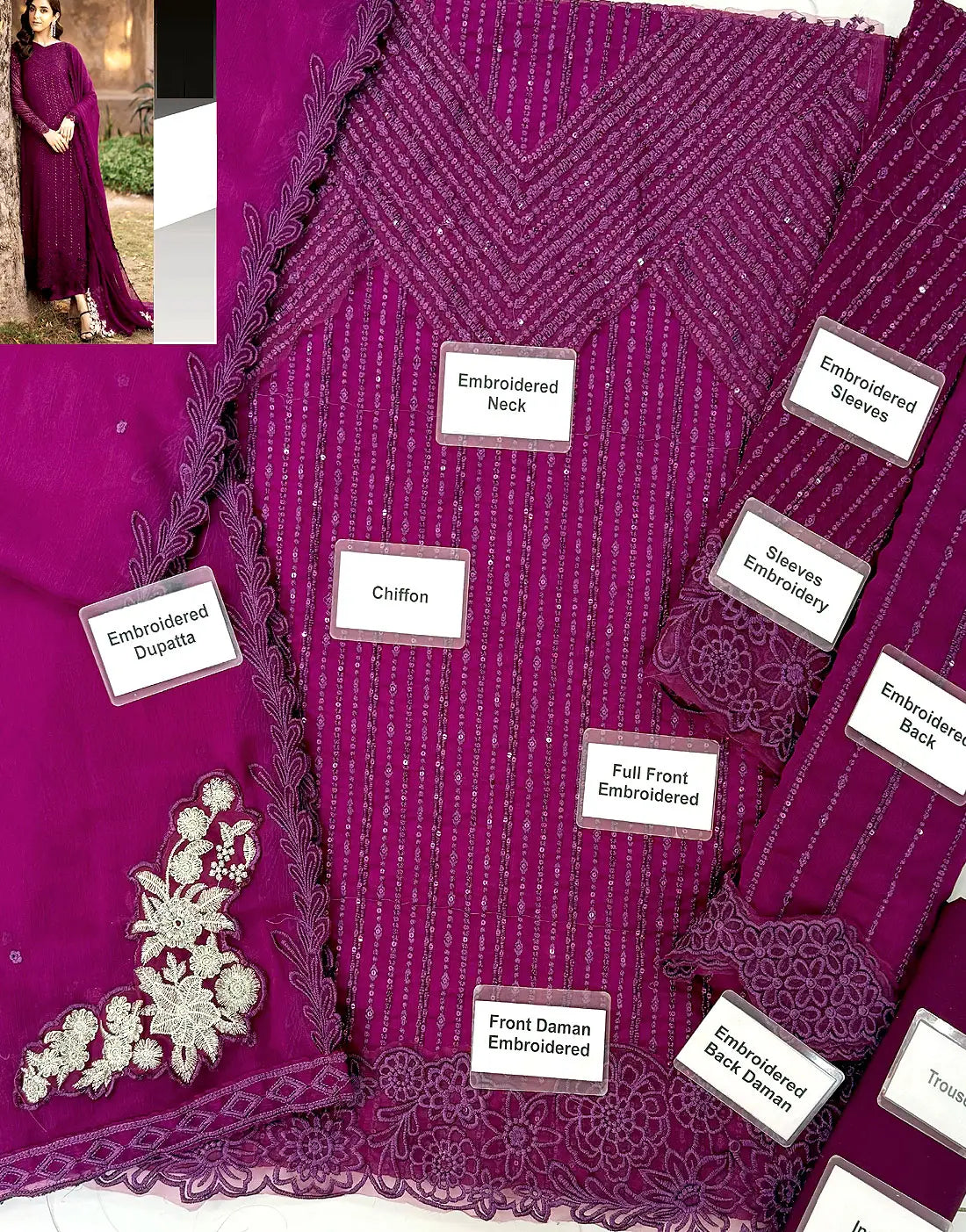 - Embroidered Chiffon Front