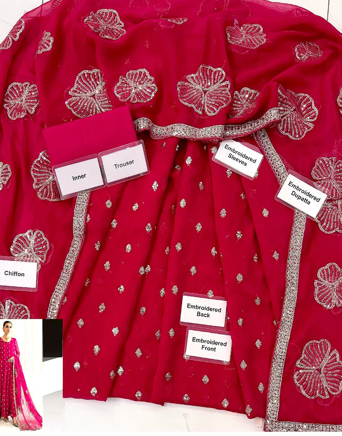Elegant Embroidered Atishi Chiffon Wedding Dress with Chiffon Dupatta