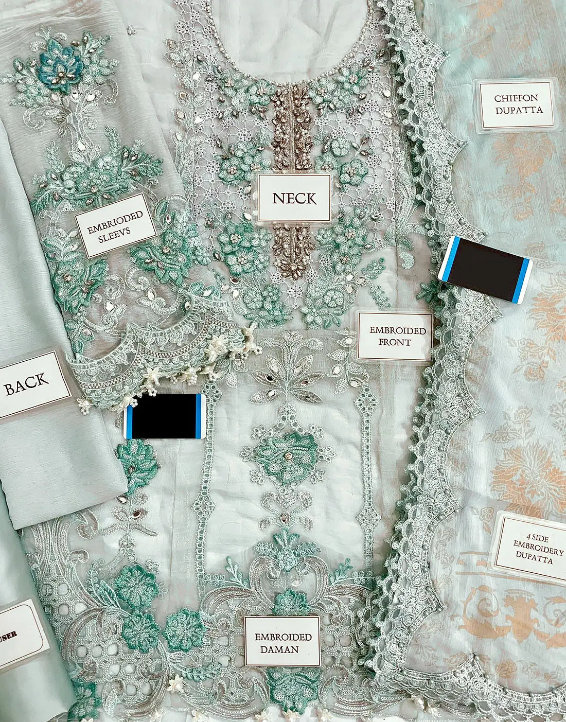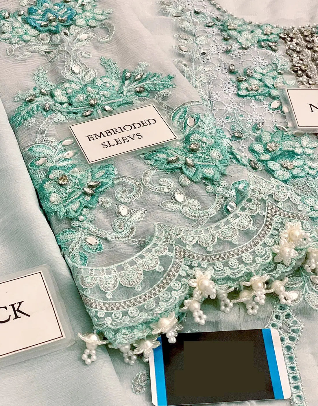 Looking to buy Premium 3D & Cutwork Embroidered Ice Blue Chiffon Party Wear Dress with Luxe Embellishments online in Pakistan? Discover modern designs, reliable quality, and the best price available. Shop now and enjoy fast delivery and secure checkout.