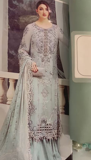 Imagine walking into a festive gathering, the soft glow of lights reflecting off delicate 3D embroidery that shimmers with every step. Too often, party wear feels repetitive or heavy, leaving you uncomfortable and unnoticed. This party wear dress rewrites that story. Crafted from premium chiffon in a serene ice blue shade, it flows effortlessly, offering both elegance and comfort. The intricate cutwork detailing and luxe embellishments transform it into a masterpiece of modern Pakistani fashion, blending artistry with sophistication. Lightweight yet regal, it's perfect for weddings, receptions, or evening soirees where you want to stand out without trying too hard. Every stitch speaks of refinement, every detail designed to make you feel radiant. Don't wait, add this stunning chiffon dress to your wardrobe today and let your presence be unforgettable!
