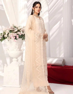 Batul Semi-Stitched Ivory Embroidered Chiffon Dress for Festive & Party Wear