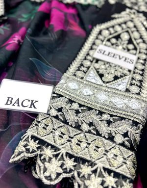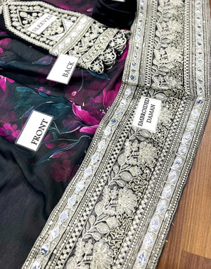 Adorable Floral Print Embroidered Chiffon Party Wear Maxi Design for Girls