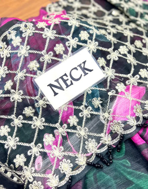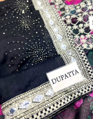 - Dupatta: 4 Side Border Embroidered Chiffon Dupatta