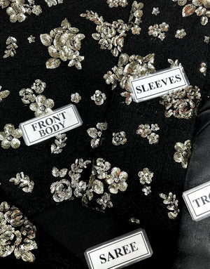Luxury Heavy Embroidered Black Chiffon Wedding Saree