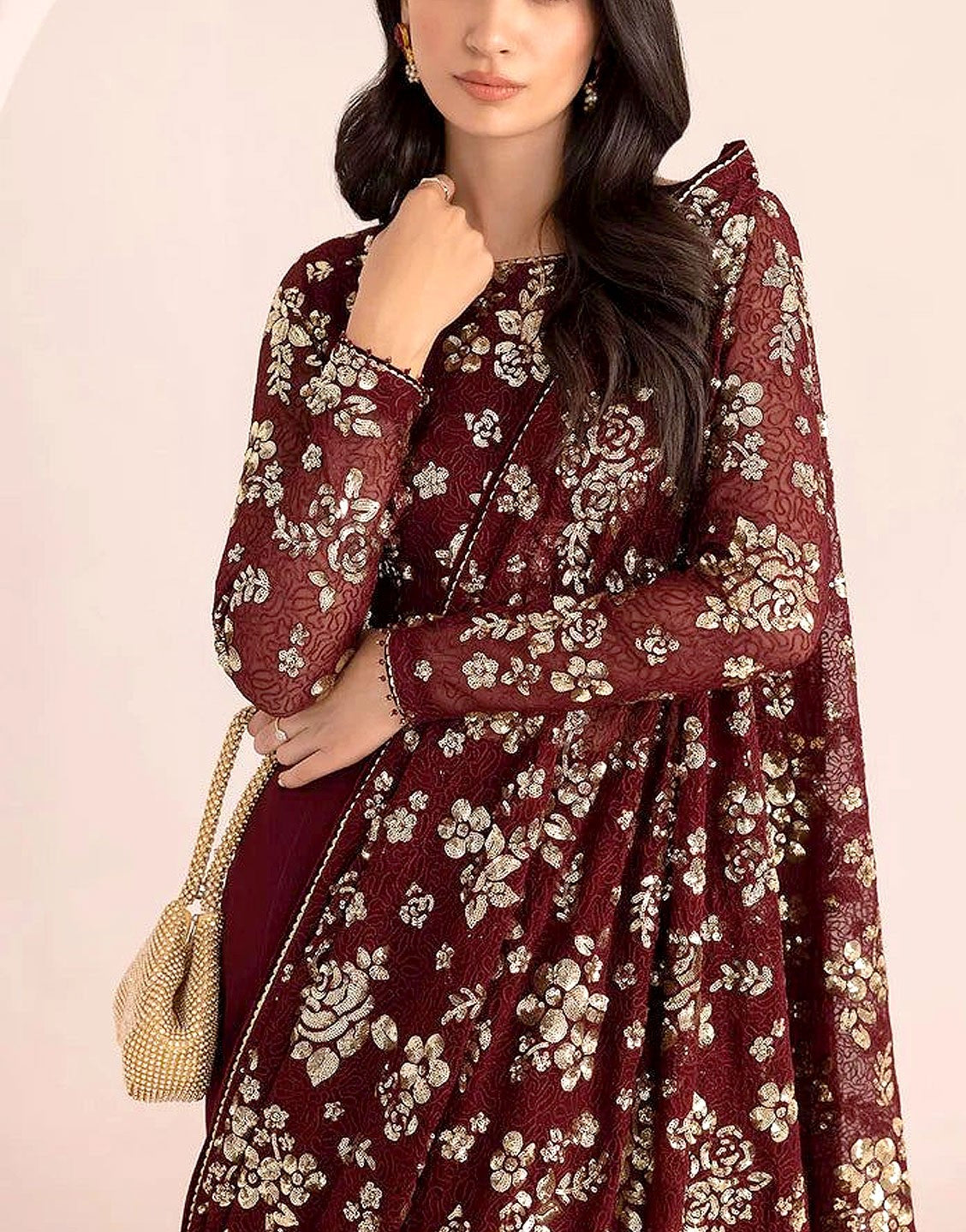 - Full Sequins Embroidered Chiffon Body