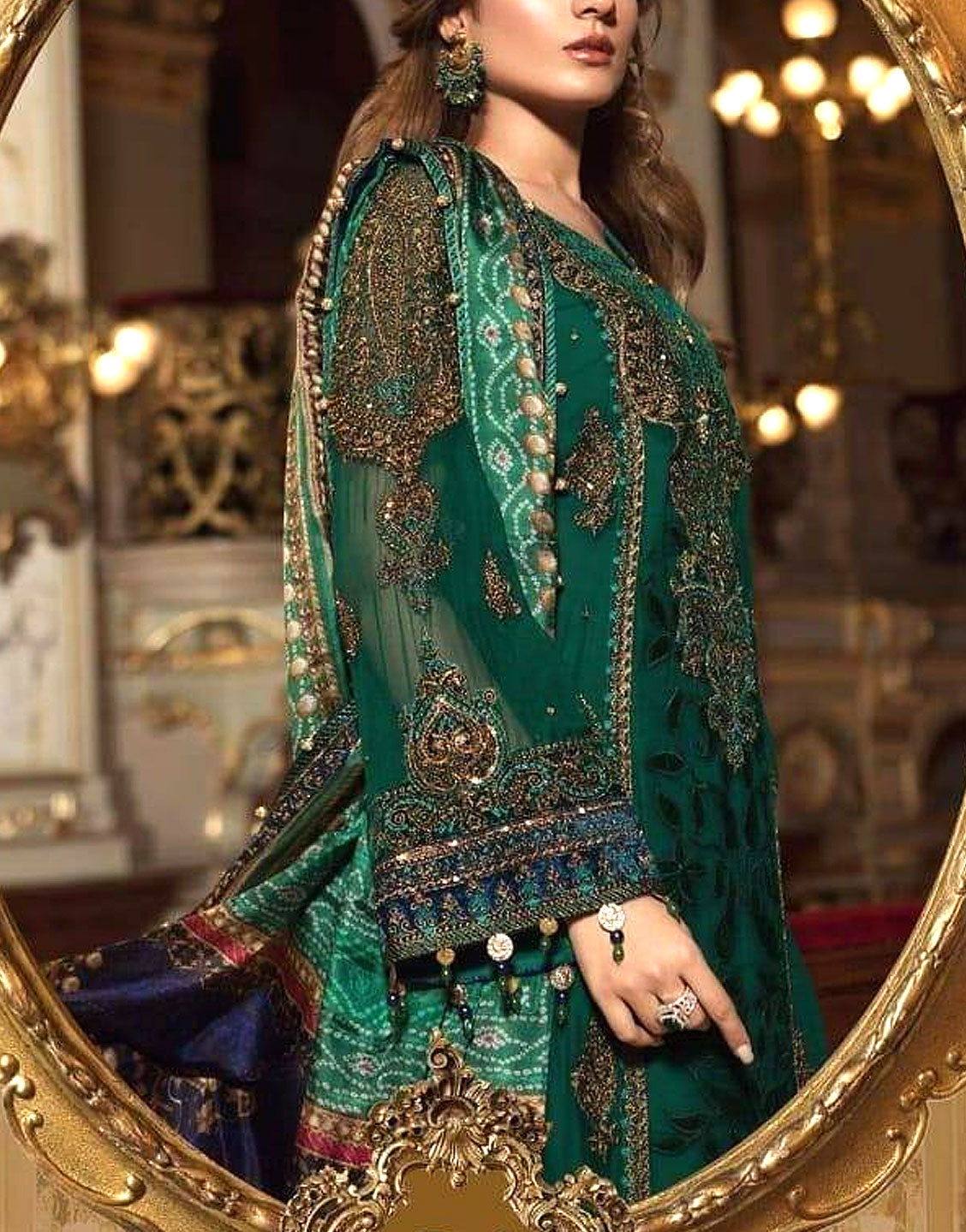Heavy Embroidered Chiffon Suit with Digital Print Silk Dupatta