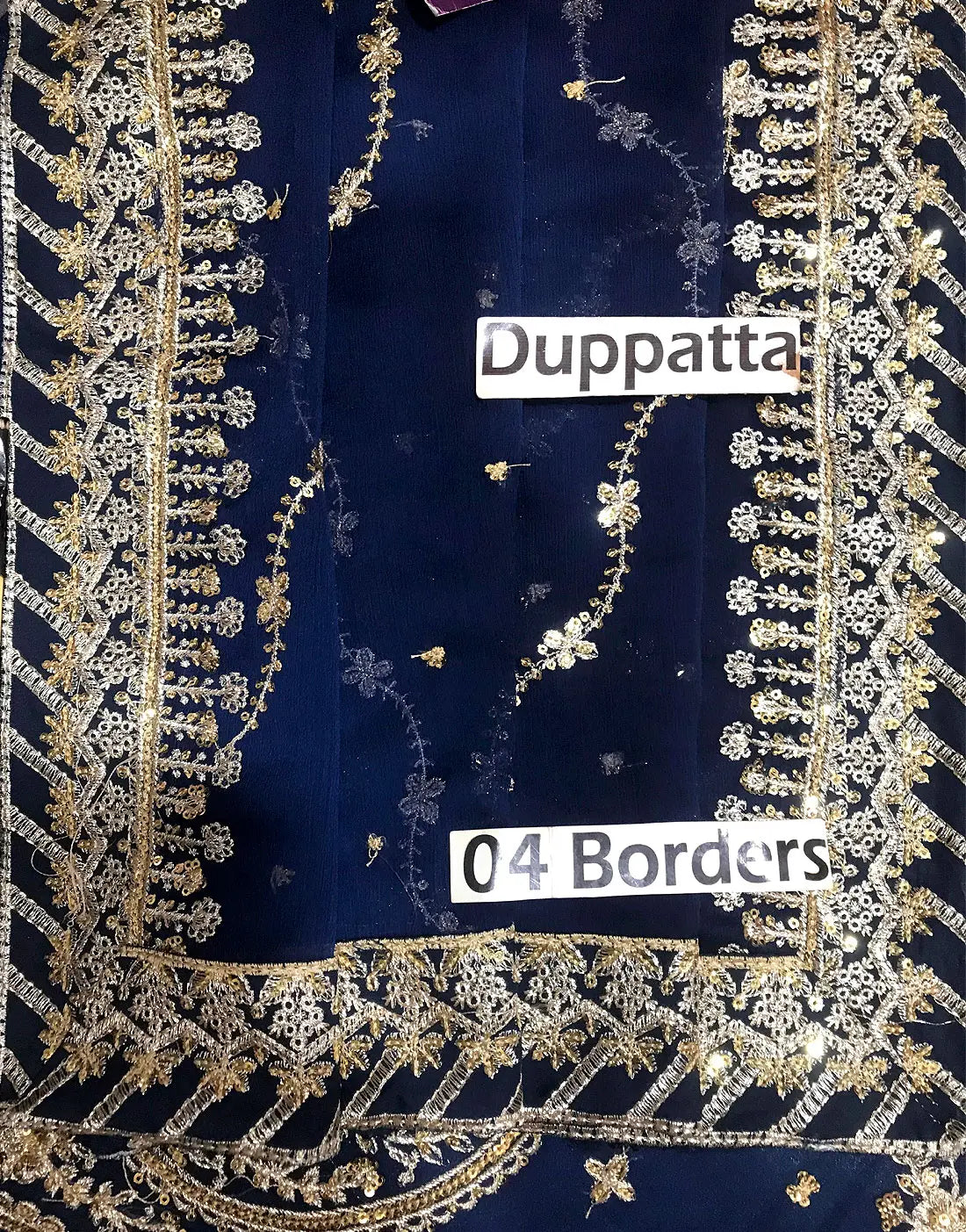- Dupatta: 4 Side Border Embroidered Chiffon Dupatta