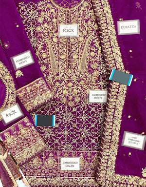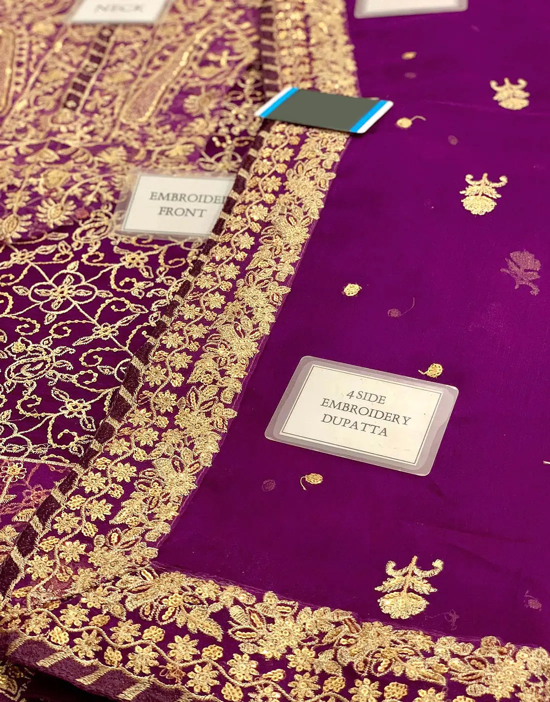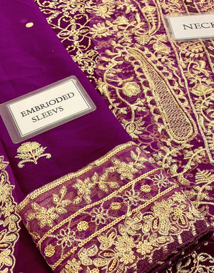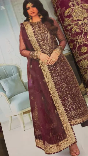 Finding a wedding dress that truly balances elegance, comfort, and tradition can be challenging, especially when ordinary outfits fail to capture the grandeur of Pakistani celebrations. This Exquisite Embroidered Deep Plum Chiffon Wedding Dress solves that problem with its premium chiffon fabric and intricate embroidery, designed to make you shine on your special day. The rich deep plum shade reflects sophistication, while the delicate embellishments highlight fine craftsmanship that blends heritage with modern style.