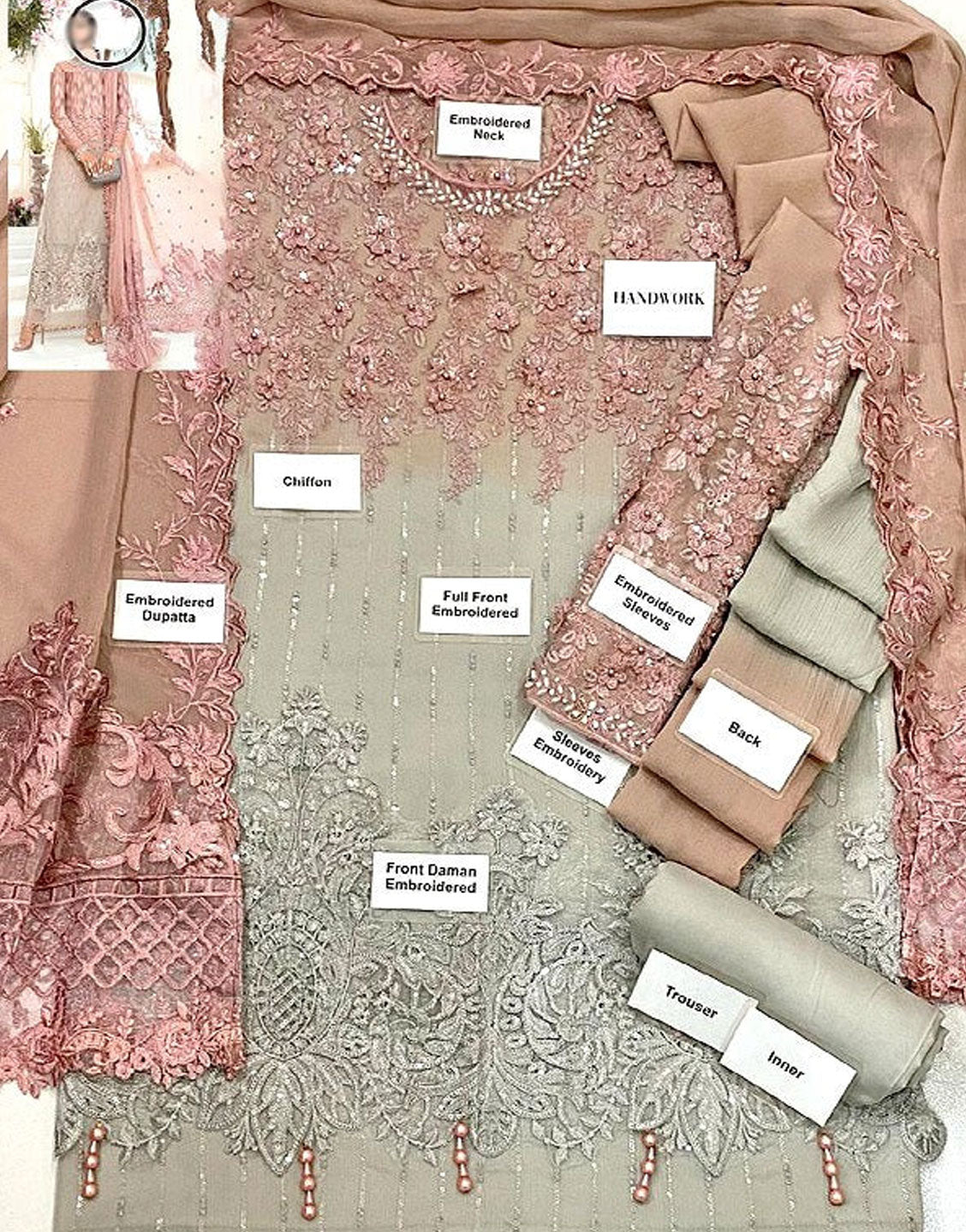- 3D + Handwork Embroidered Chiffon Front
