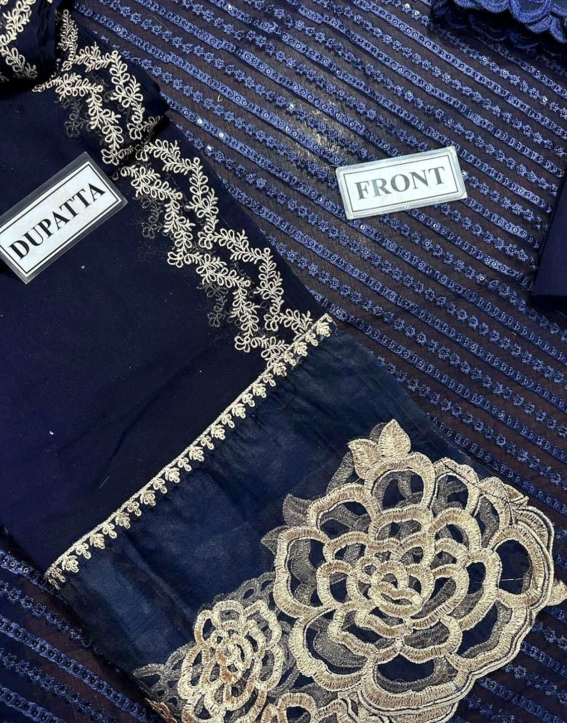 Looking to buy Fancy Heavy Embroidered Navy Blue Chiffon Wedding Dress online in Pakistan? Discover modern designs, reliable quality, and the best price available. Shop now and enjoy fast delivery and secure checkout.