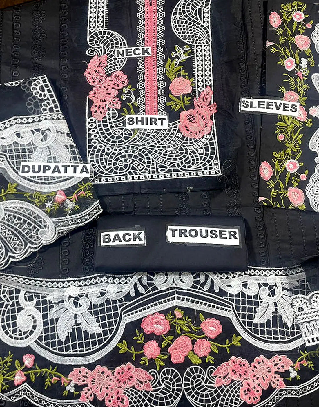 Looking to buy Luxury Schiffli Embroidered Black Cotton Lawn Dress with 4-Side Emb. Chiffon Dupatta online in Pakistan? Discover modern designs, reliable quality, and the best price available. Shop now and enjoy fast delivery and secure checkout.