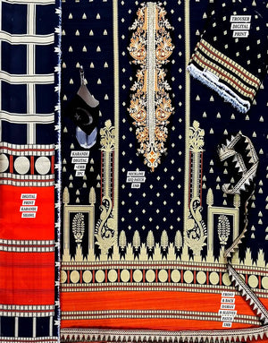 - Sleeves: Digital Print Karandi Sleeves with Border Patti