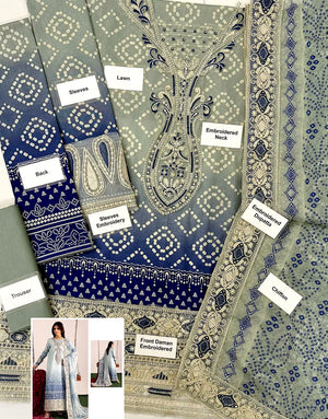 Heavy Embroidered Chunri Print Lawn Dress Design with 4-Side Emb. Chiffon Dupatta