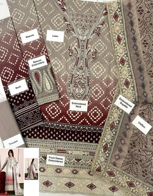 Heavy Embroidered Chunri Print Lawn Dress Design with 4-Side Emb. Chiffon Dupatta