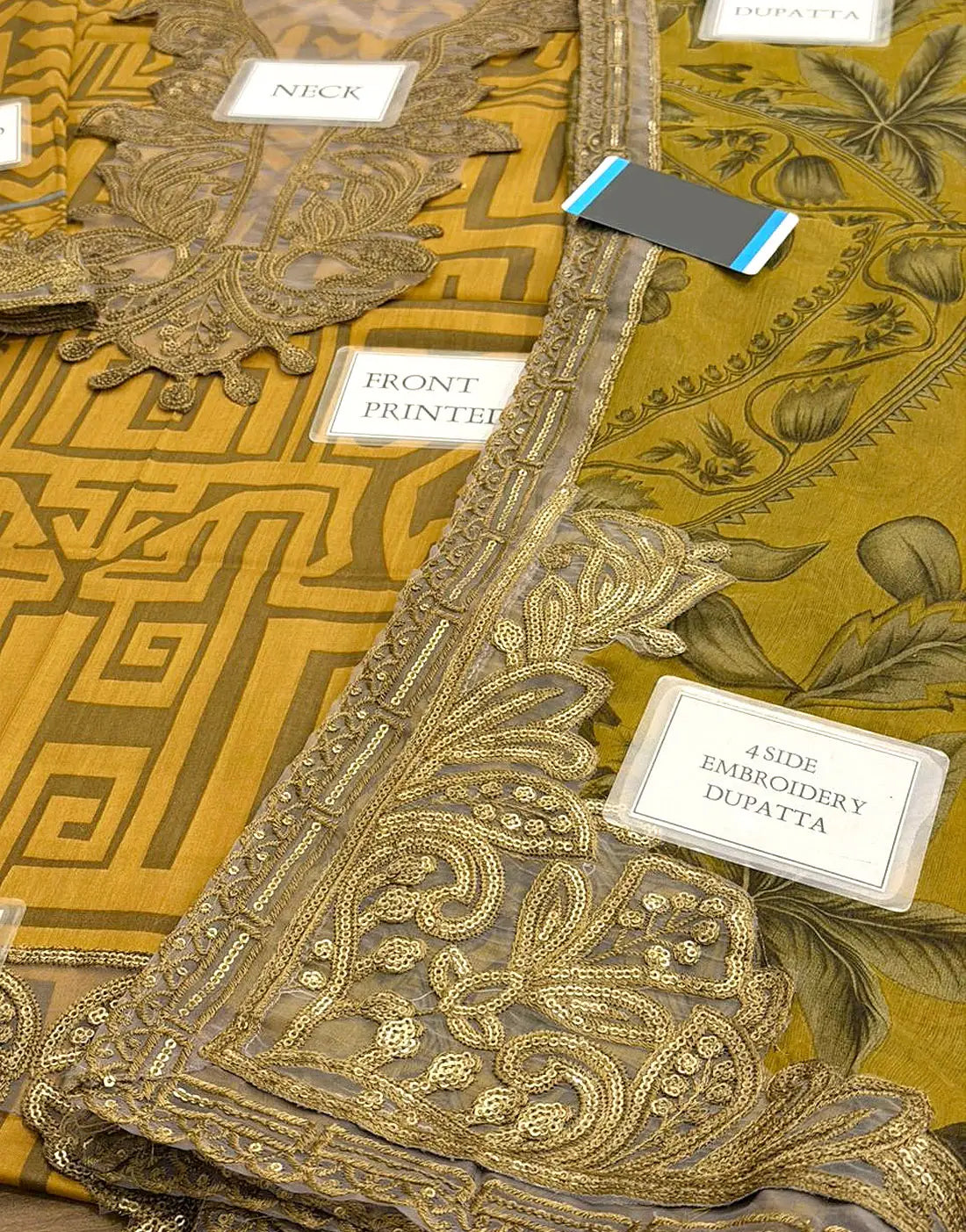 - Dupatta: 4-Side Embroidered Border Printed Chiffon Dupatta