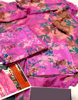 Make a stunning impression this season with this exquisite unstitched lawn suit from PakStyle, perfectly tailored for the modern woman. This vibrant purple color dress Pakistani style is a breath of fresh air, ideal for everything from a casual afternoon dawat to a semi-formal evening gathering. The shirt is beautifully adorned with intricate embroidery on premium-quality lawn fabric, ensuring you stay cool and comfortable in our local climate.