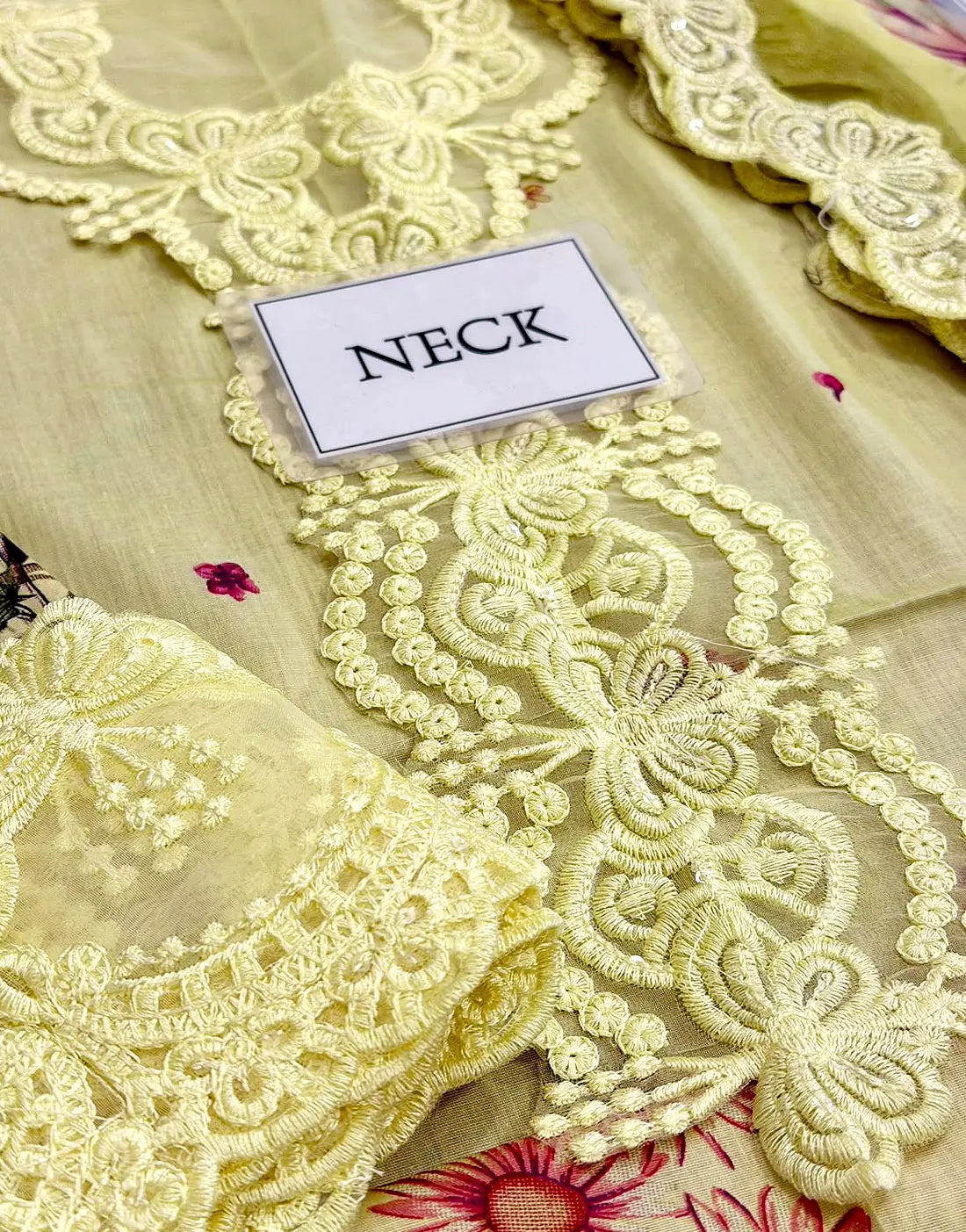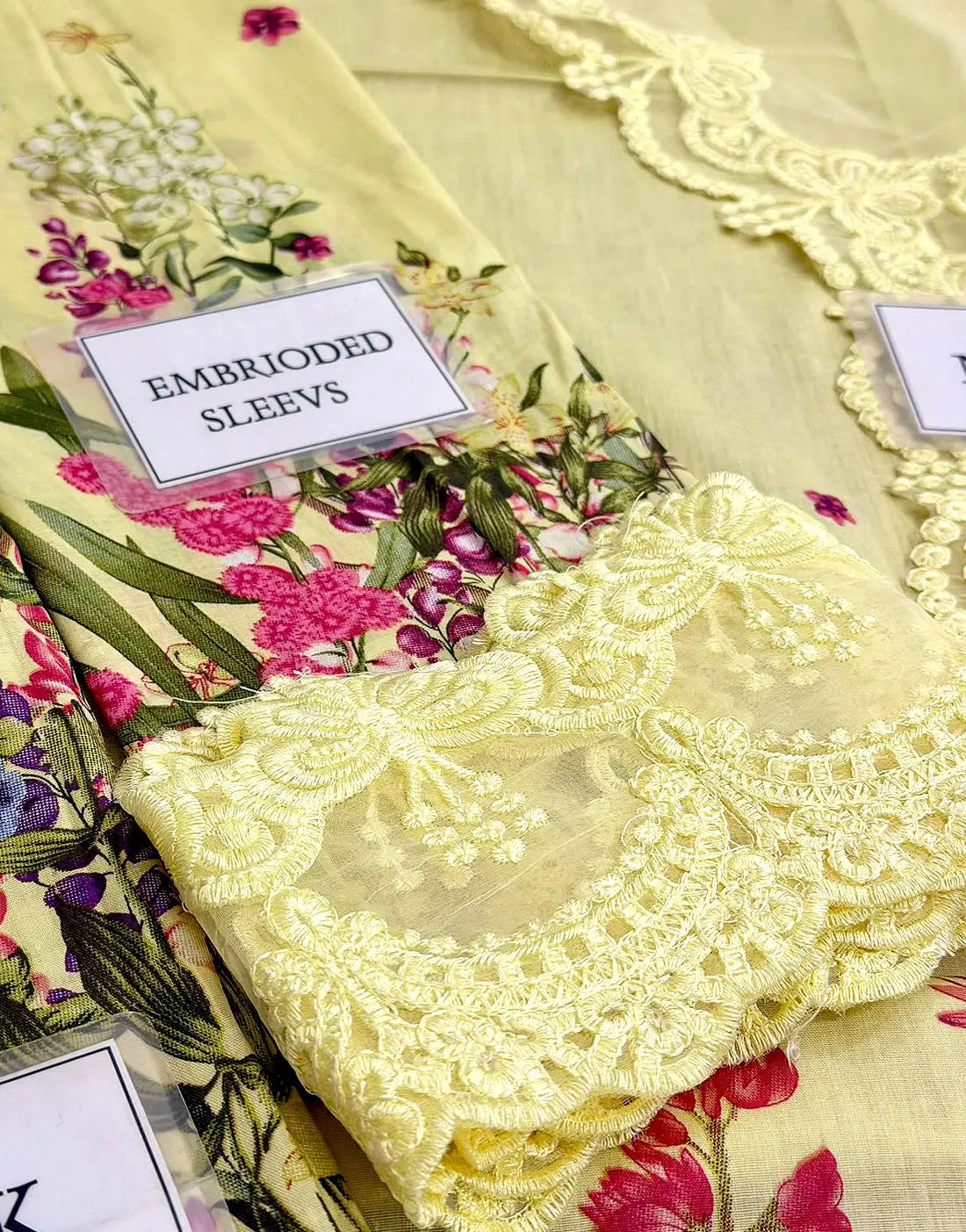- Sleeves: Printed Lawn Sleeves with Embroidered Patches