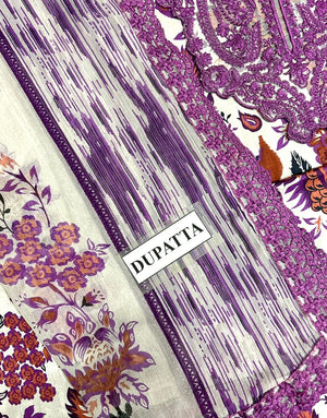 All-Over Flower Print Embroidered Lawn Design with Chiffon Dupatta