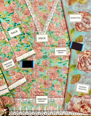 Embroidered EID Lawn Dress with Printed Chiffon Dupatta