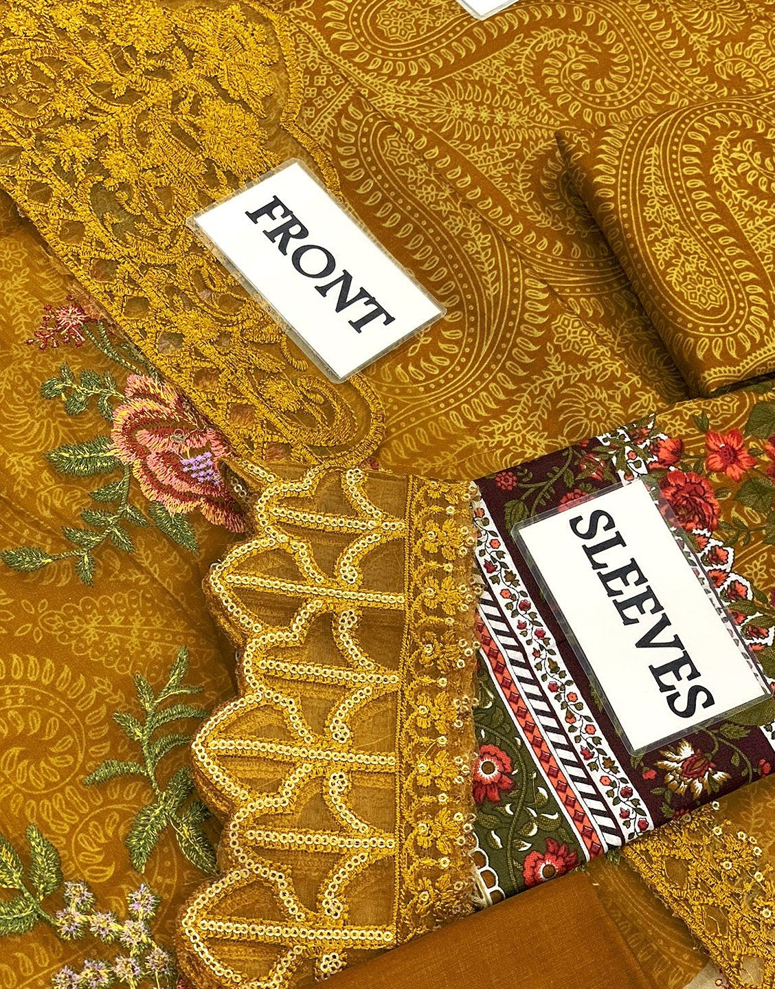 - Printed Lawn Sleeves with Embroidered Patches