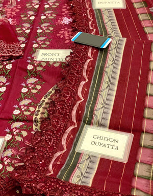 All-Over Print Embroidered Lawn Dress with Chiffon Dupatta