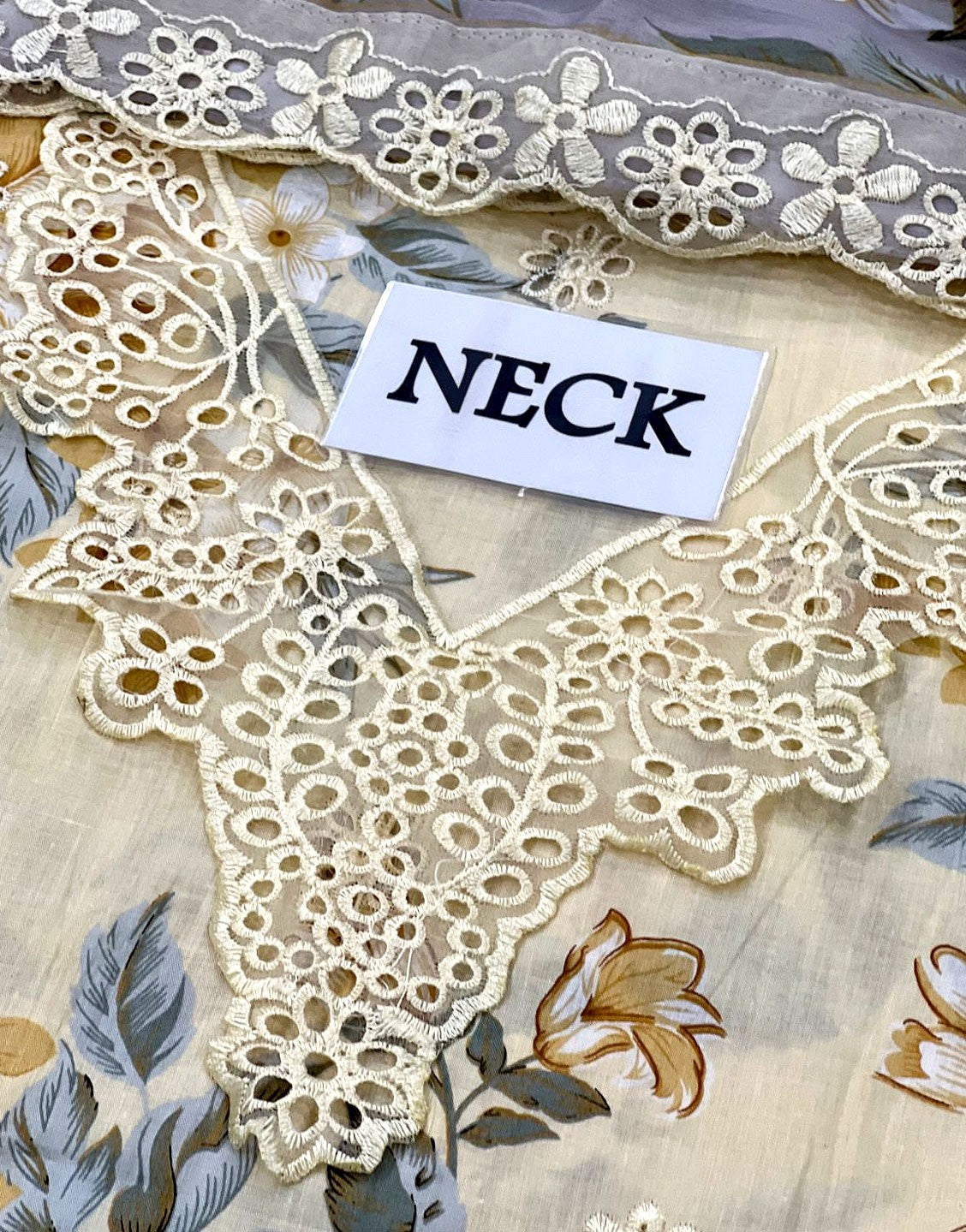 - Schiffli Embroidered Lawn Sleeves with Embroidered Patches