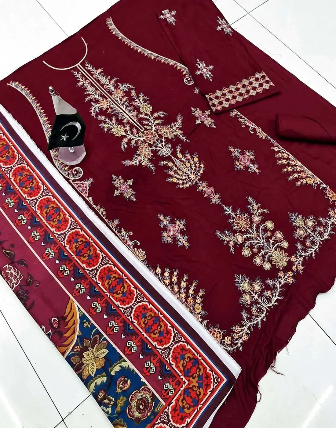 Looking to buy Graceful Heavy Embroidered Burgundy Color Linen Dress for Winter online in Pakistan? Discover modern designs, reliable quality, and the best price available. Shop now and enjoy fast delivery and secure checkout.