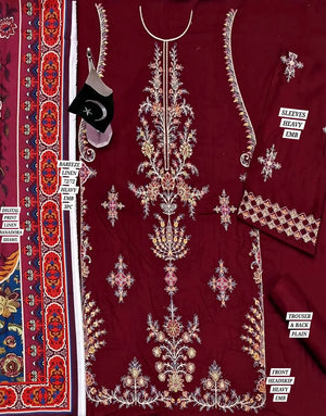 Looking to buy Graceful Heavy Embroidered Burgundy Color Linen Dress for Winter online in Pakistan? Discover modern designs, reliable quality, and the best price available. Shop now and enjoy fast delivery and secure checkout.