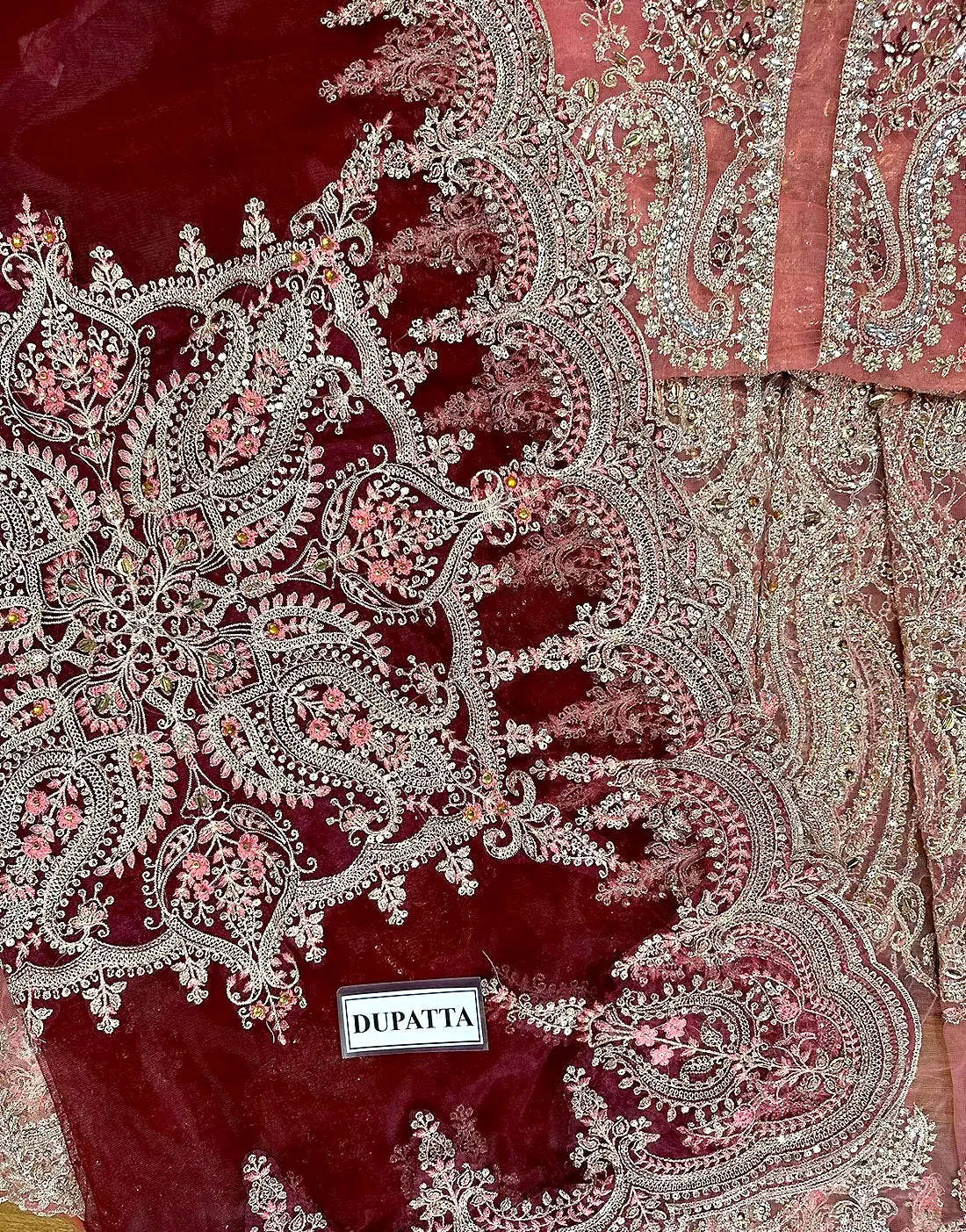 Finding the right outfit for weddings, receptions, or festive parties in Pakistan can be a challenge when you want elegance with comfort. This Luxurious Intricate Embroidered Rust Orange Net Maxi Dress is the perfect solution, designed to make you stand out at mehndi, walima, or family gatherings. The rich rust orange shade reflects traditional Pakistani vibrance, while the delicate embroidery on premium net fabric adds timeless sophistication.