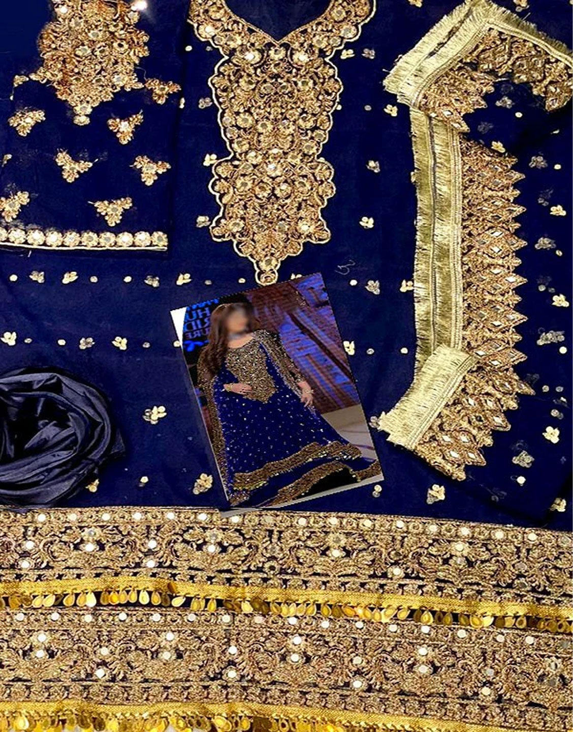 - Unstitched Embroidered Fancy Net Wedding Dress