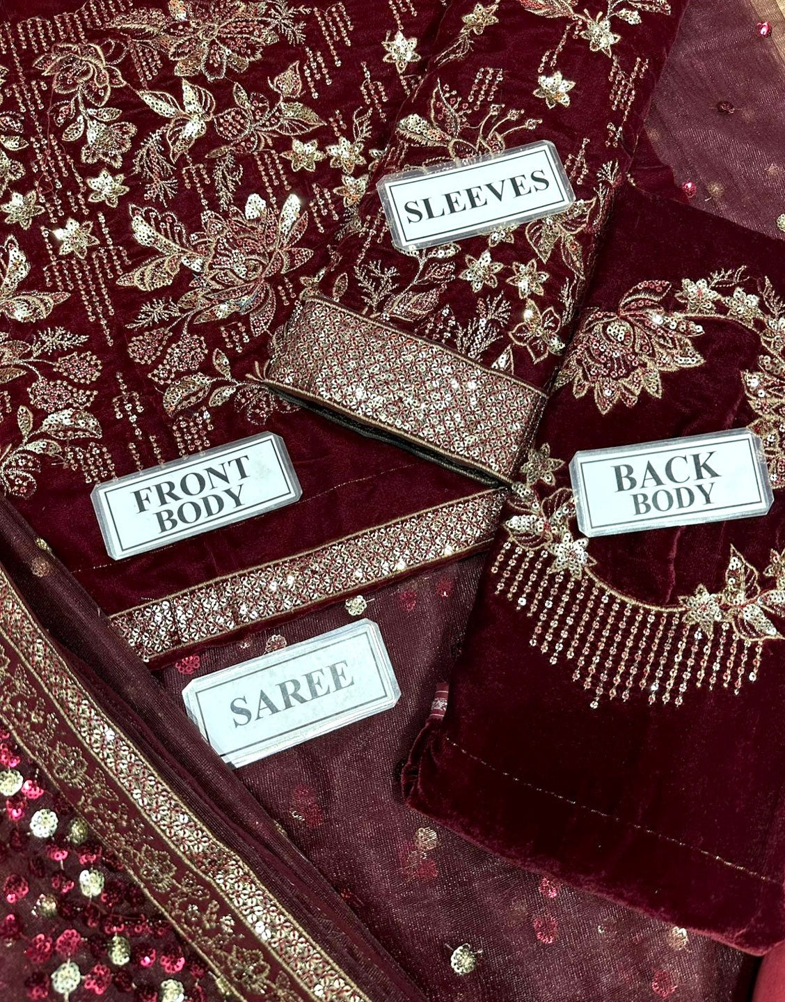 Luxury Heavy Embroidered Velvet + NET Bridal Saree