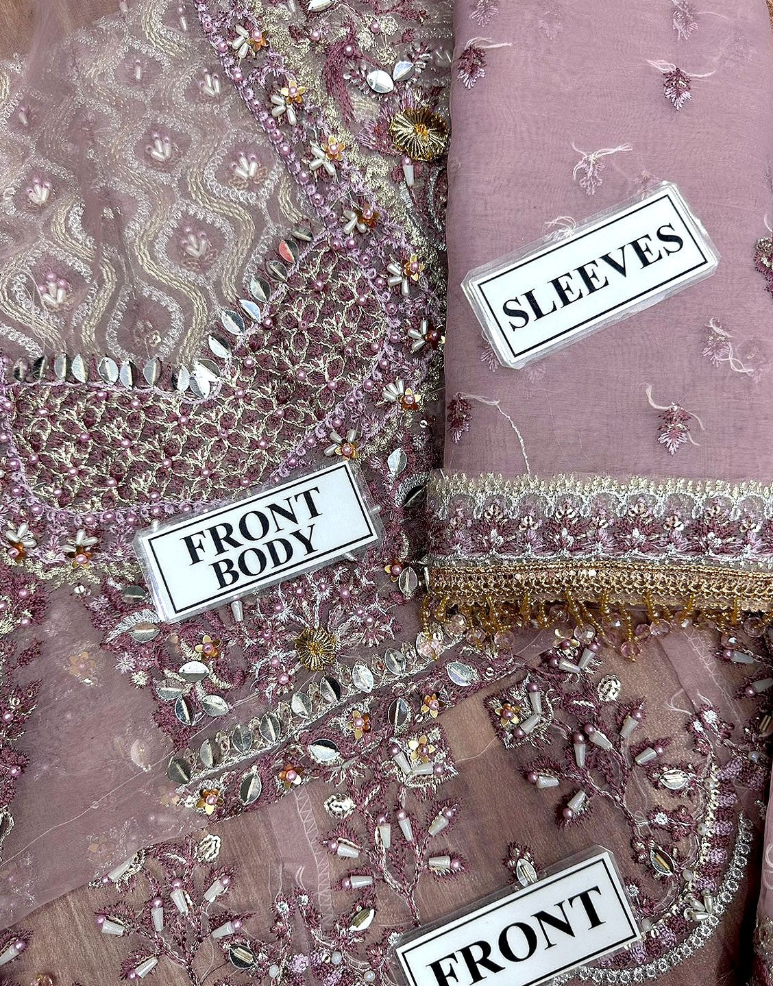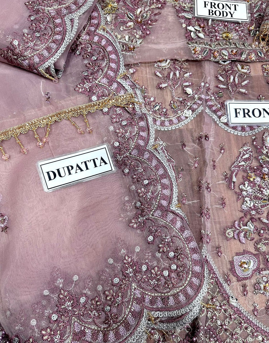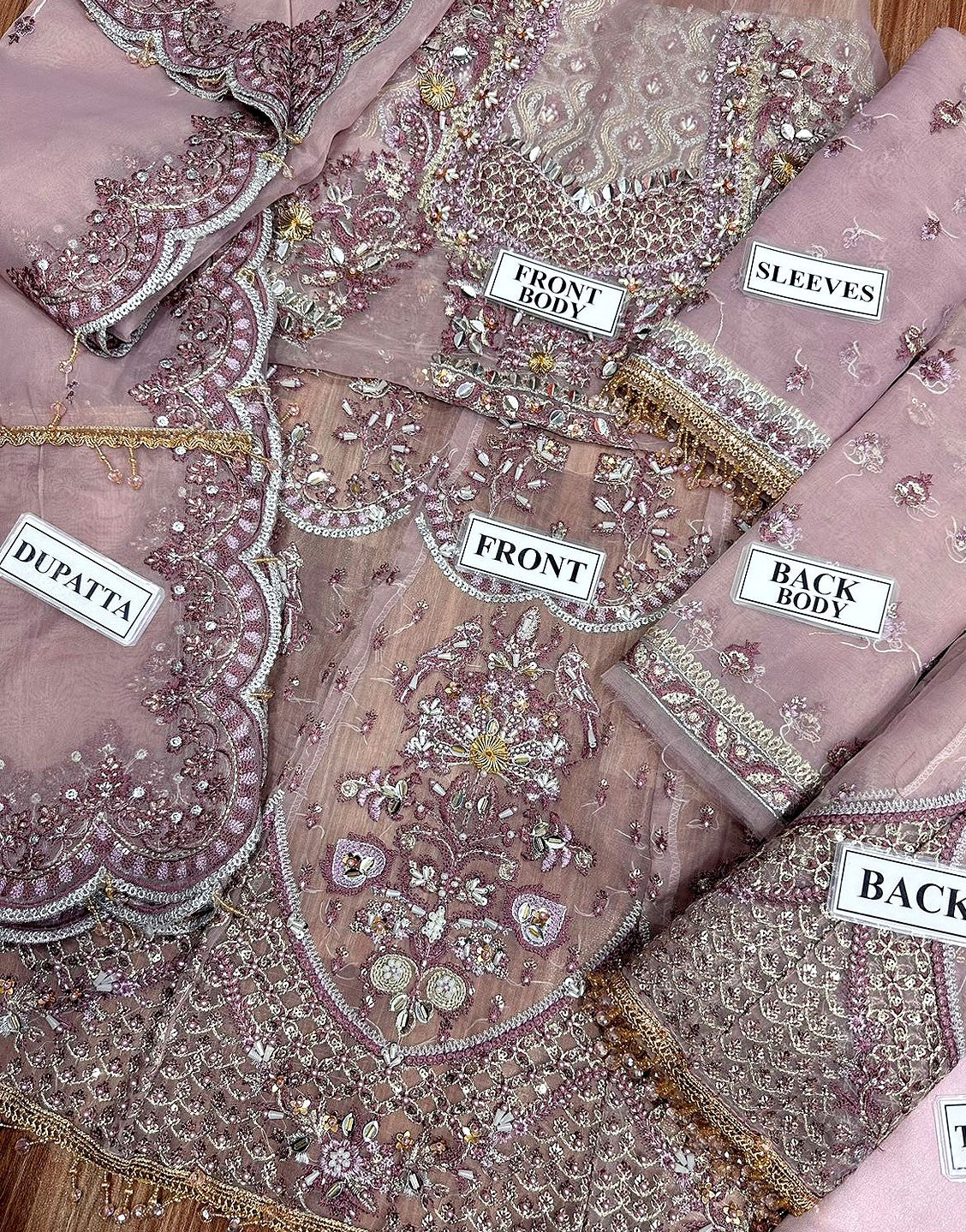 - Handwork Heavy Embroidered Organza Front Neck & Body
