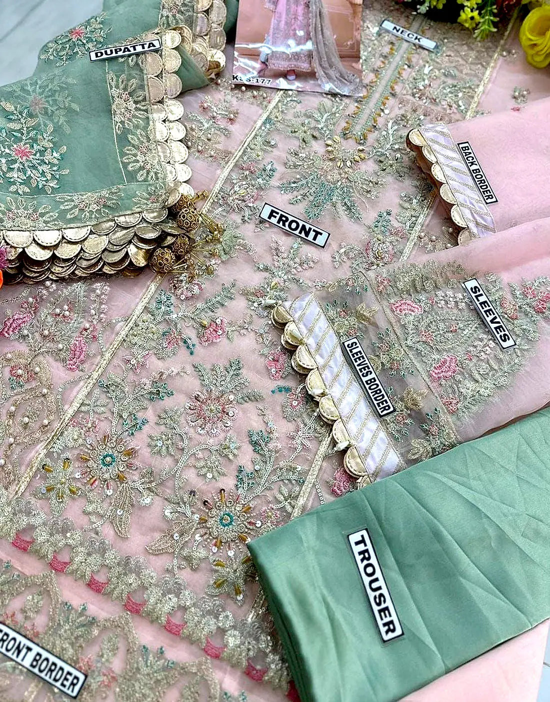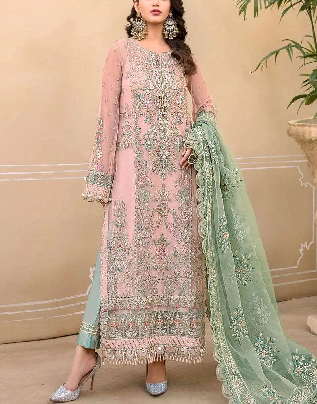 Looking to buy Luxe Embroidered & Handcrafted Neck Blush Pink Organza Dress with Mint Green Net Dupatta online in Pakistan? Discover modern designs, reliable quality, and the best price available. Shop now and enjoy fast delivery and secure checkout.