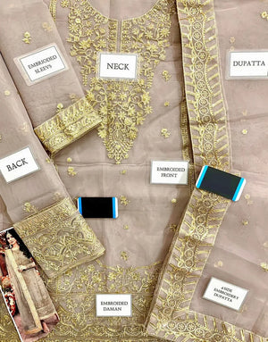- Unstitched Embroidered Organza Suits Designs