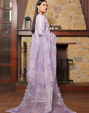 Sharjeena Semi-Stitched Embroidered Purple Organza Dress with Free Clutch Bag