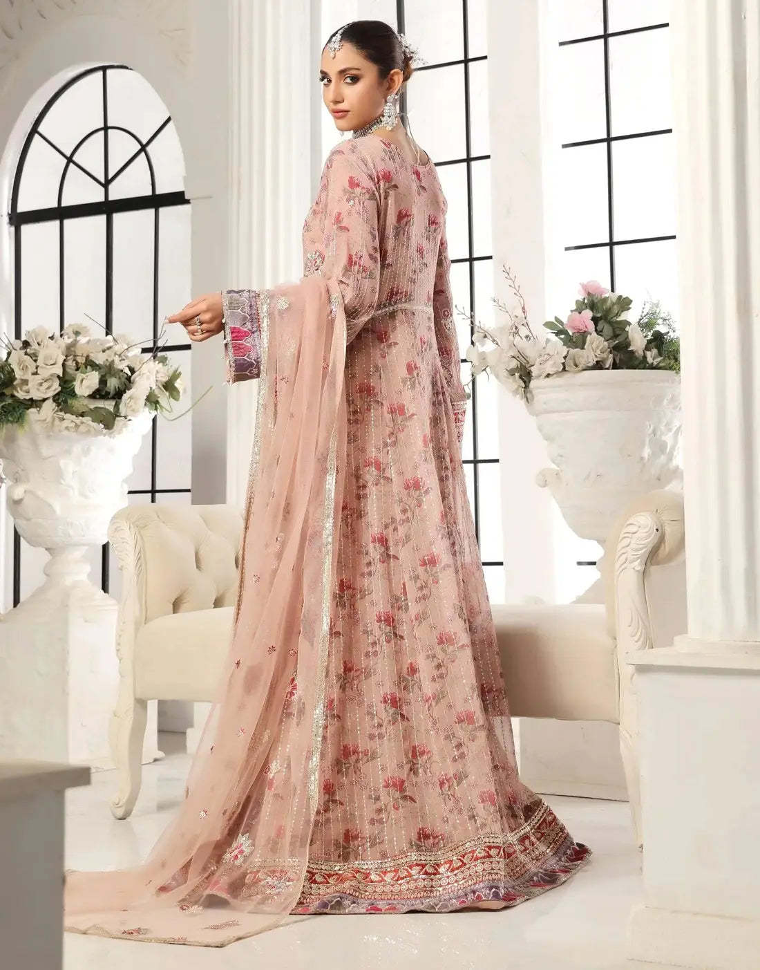 - Shirt: Semi-Stitched Digital Print & Luxury Embroidered Net Maxi