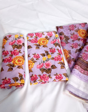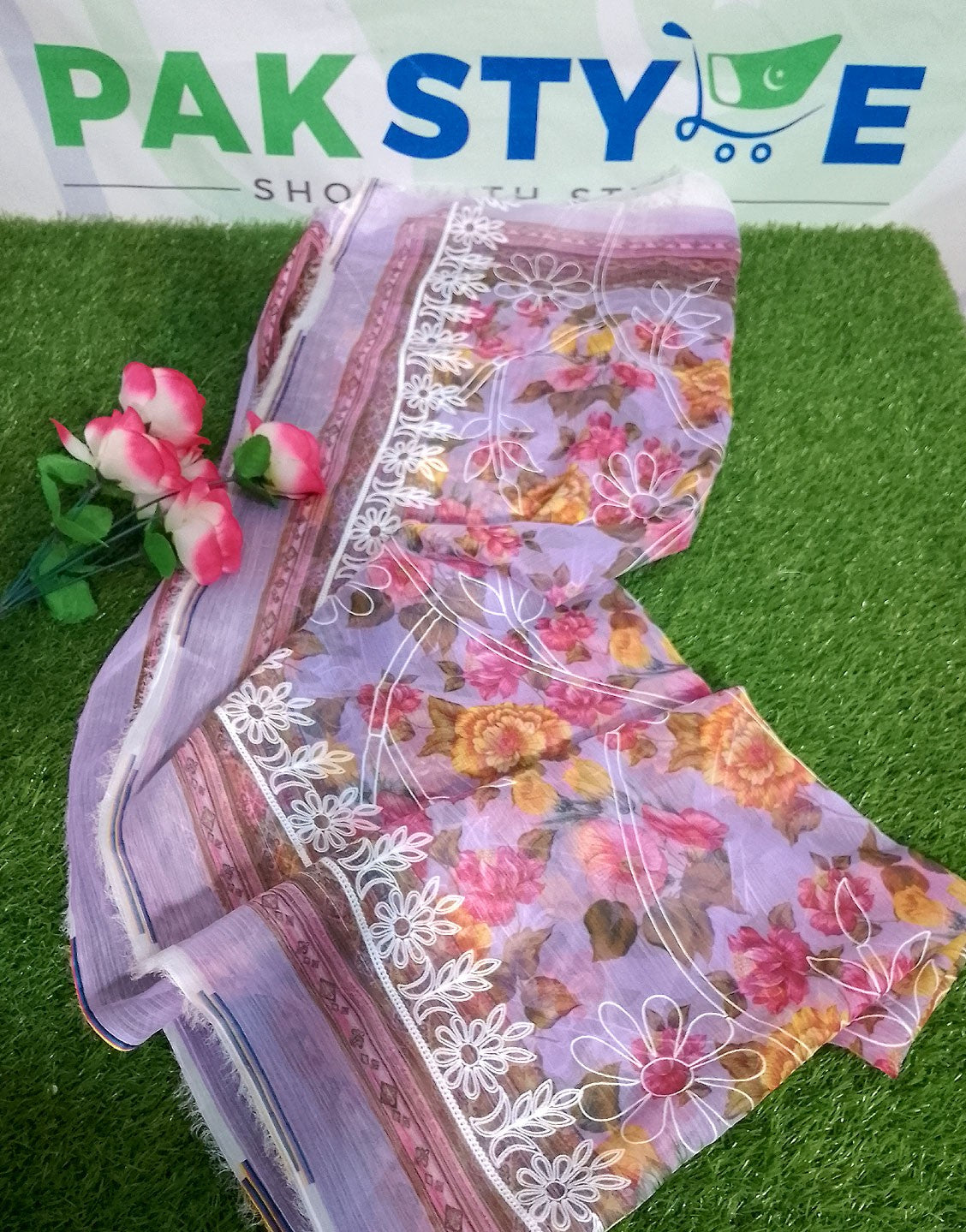 - Printed with Scroll Embroidered Swiss Lawn Sleeves