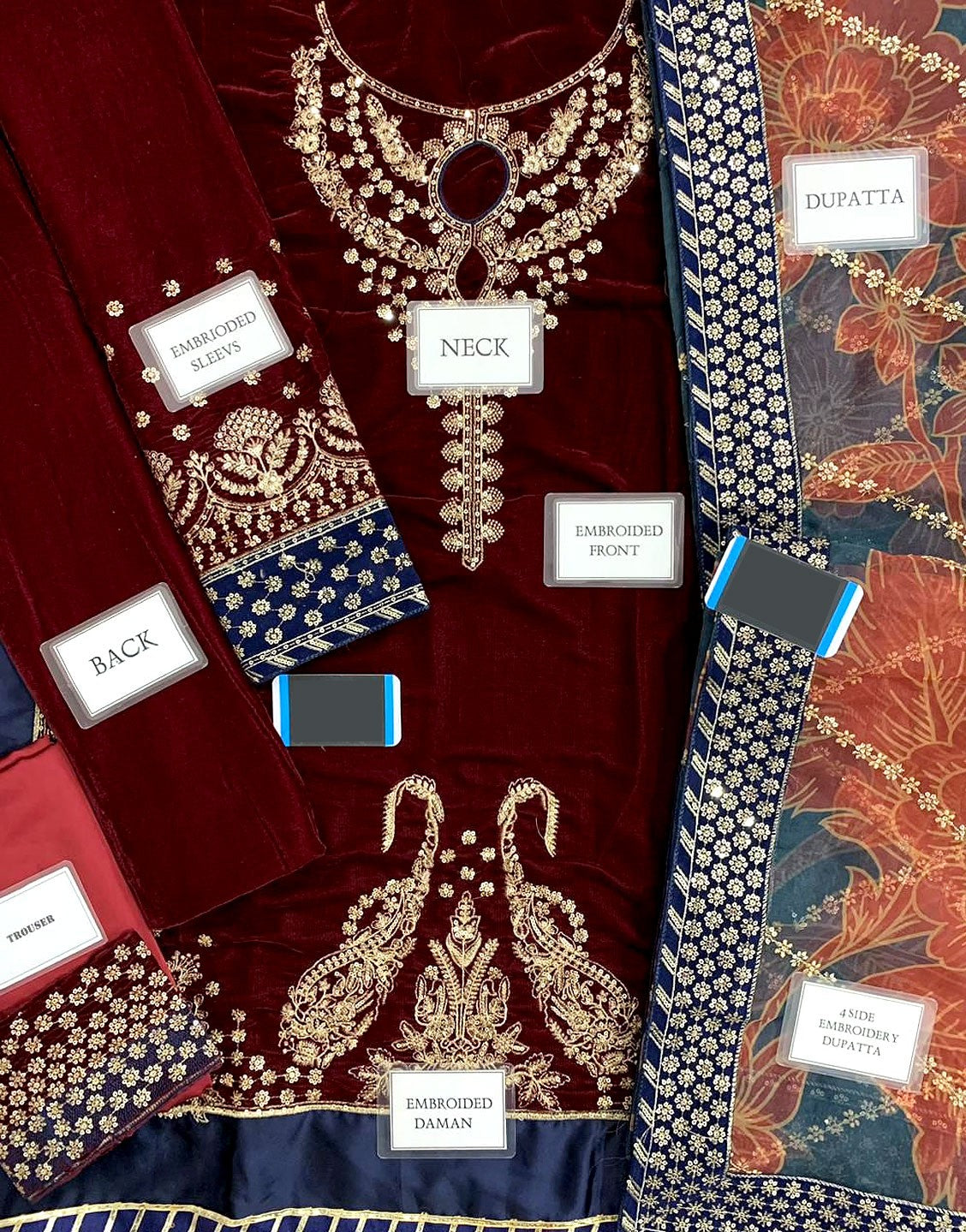 - Embroidered Velvet Front